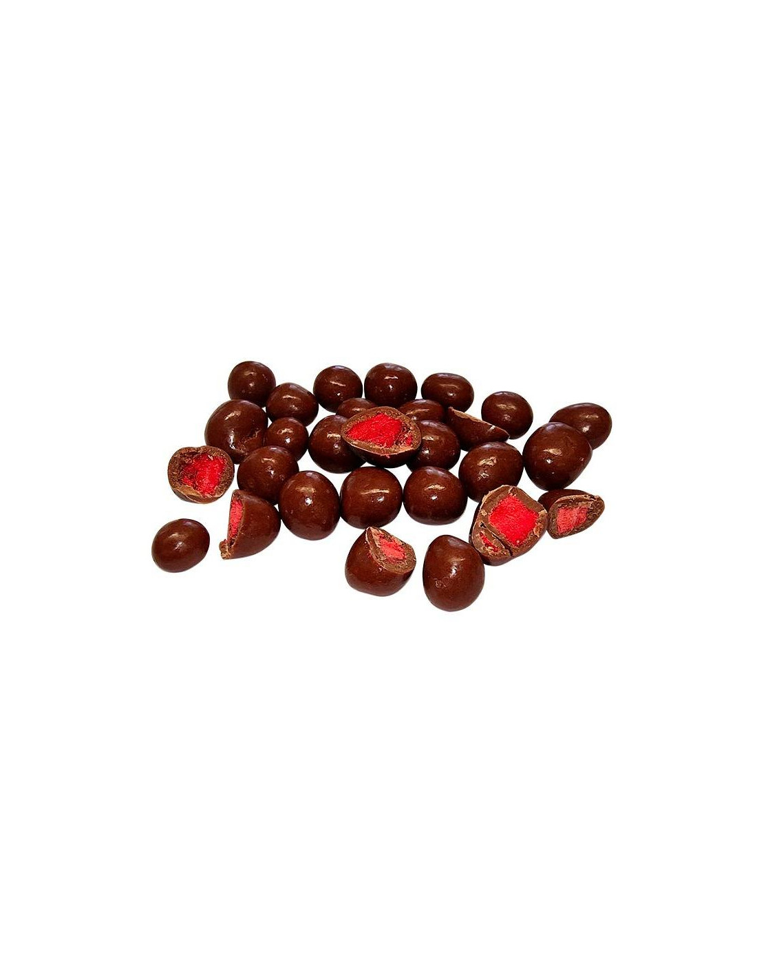Složení: mléčná čokoláda 88 % (cukr, kakaové máslo, sušené MLÉKO, kakaová hmota, emulgátor: lecitiny; přírodní vanilkové aroma), mrazem sušené kousky jahod 11 %, lešticí směs (tapiokový škrob, cukr, lešticí látka: šelak). V mléčné čokoládě obsah kakaové sušiny nejméně 30 %. Výrobek může obsahovat stopy arašídů, skořápkových plodů, obilovin obsahujících lepek, sóji a sezamu. Skladujte v suchu, chraňte před teplem.